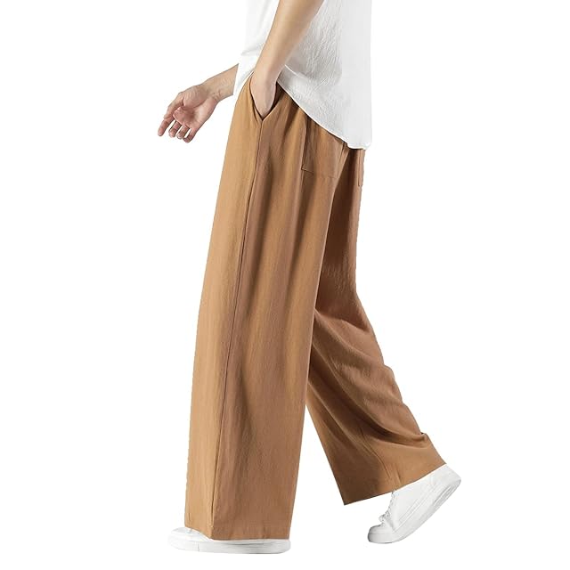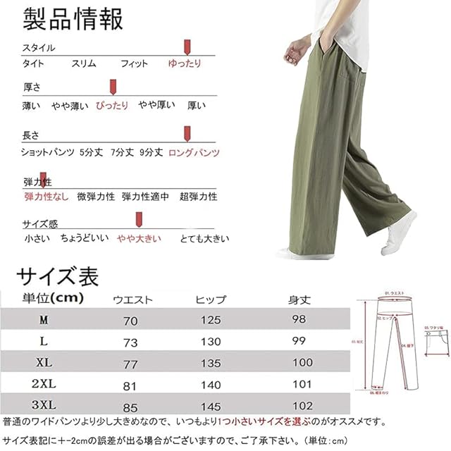 [SWRIKIIEF] メンズ ズボン メンズ 夏服 ズボン リネン サルエルパンツ メンズ 夏 ワイドパンツ 涼しい パンツ ロングパンツ khaki 2XL