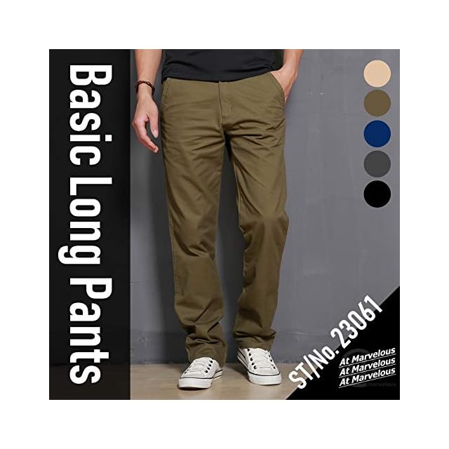 [At Marvelous] チノパン メンズ ストレート ロングパンツ 大きいサイズ ズボン ゆったり ST/No.23061 (カーキ, XXL)