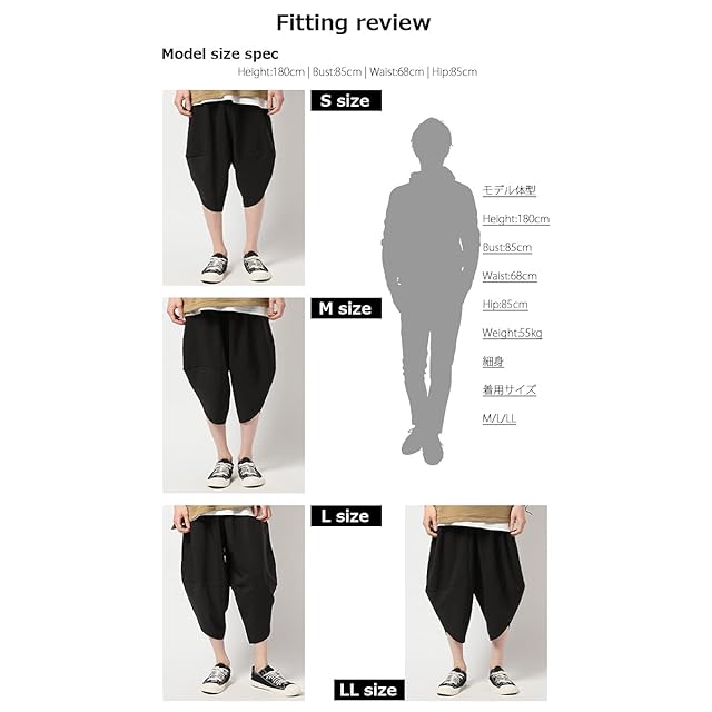 LL:ウエスト 約85cm〜 / 股下 約78cm / 股上 約29cm / もも幅 約28cm / すそ幅 約16.5cm
