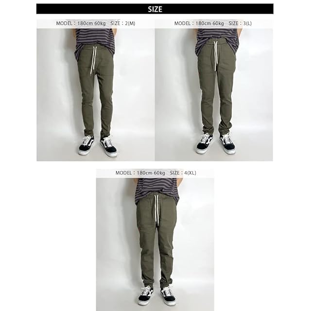 2(M):ウエスト/67cm〜80cm ヒップ/92cm ワタリ/25cm 前股上/30cm 股下/69cm 裾巾/15cm