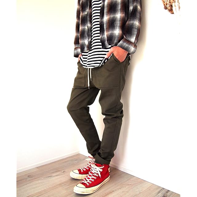 [ビートジャイブ] 9213-0008, KAHKI,3【L】 サルエルパンツ ベイカーポケットデザイン ストレッチツイルちょいサルエル ストレッチ テーパード スキニーパンツ ワークパンツ ちょいサルエルパンツ リラックスパンツ