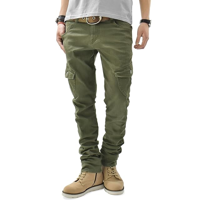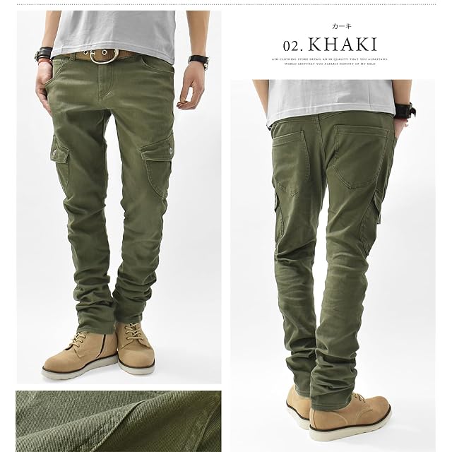 [Ash] ストレッチツイル スリムカーゴパンツ (カーキ, L)