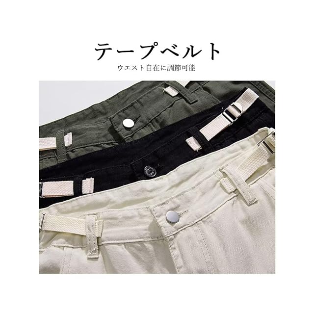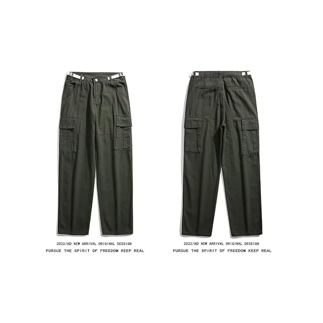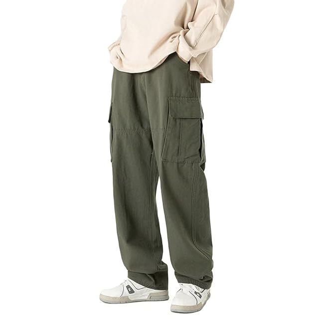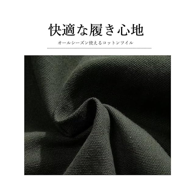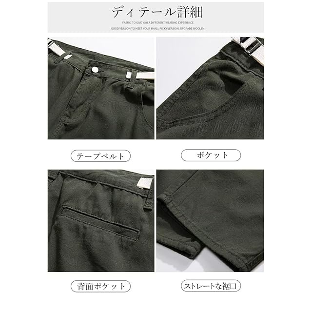 [Uroi] カーゴパンツ メンズ 綿100 ゆったり ワイドカーゴパンツ カジュアル ミリタリーパンツ ワークパンツ ロングパンツ リラックス 調整可能テープベルト オールシーズン使える グリーン L