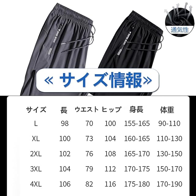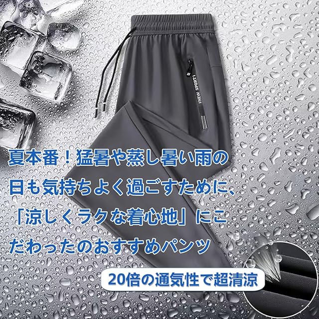 [Kesaeki] アイスシルクパンツ メンズ 運動着 パンツ メンズ 調整紐 ジョガーパンツ メンズ 冷感 ストレッチパンツ ズボン 速乾 ジッパー ワイドパンツ メンズ 薄手 涼しい