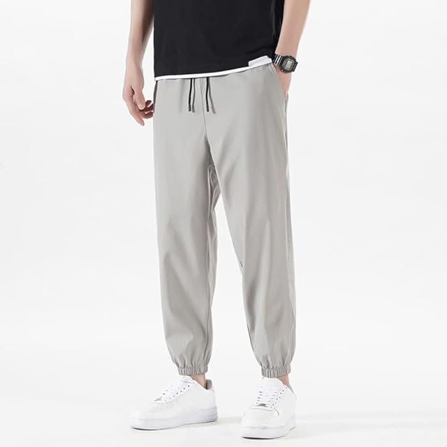 [netero] 9分 アイスシルクパンツ メンズ ナイロン 冷感 パンツ 九分丈 接触冷感 薄手 涼しい 大きいサイズ 調整紐 夏 春 秋 グレー HK566-LGRAY-2XL