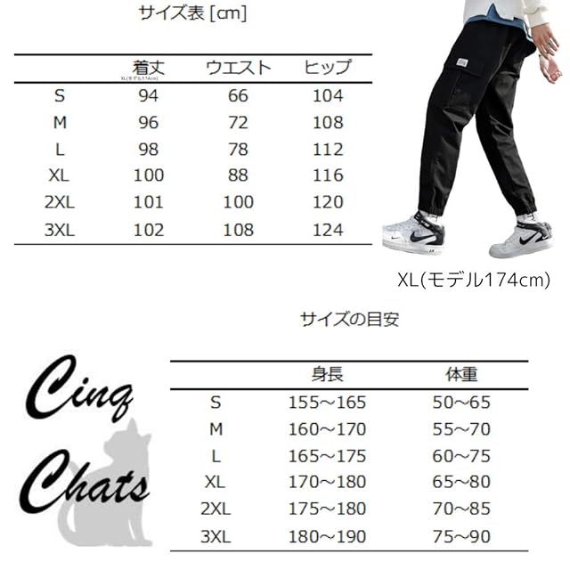 【豊富なサイズ展開】サイズはS~3XLまでの計6サイズ。あなたにピッタリなパンツをご用意 [S]:着丈94cm,ウエスト66cm [M]:着丈96cm,ウエスト72cm [L]:着丈98cm,ウエスト78cm [XL]:着丈100cm,ウエスト88cm [2XL]:着丈101cm,ウエスト100cm [3XL]:着丈102cm,ウエスト108cm