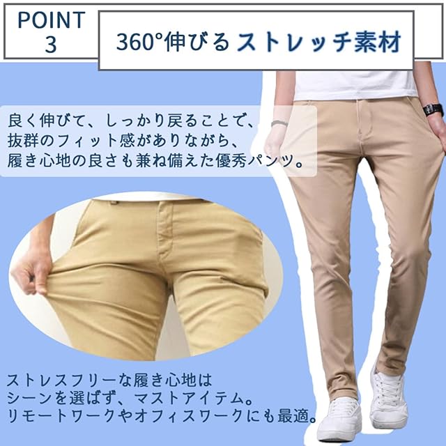 ✅【 スキニー フィット 美脚 チノパン 】流行の細身のシルエットを追求した美脚チノ。裾に向けてゆるやかにシェイプをかけており、美脚&脚長効果バツグン。