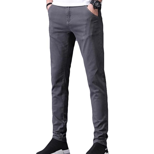 [Sunny Wing] チノパン メンズ 接触冷感 ストレッチ 薄手 スキニーパンツ カラーパンツ ズボン (L, グレー)