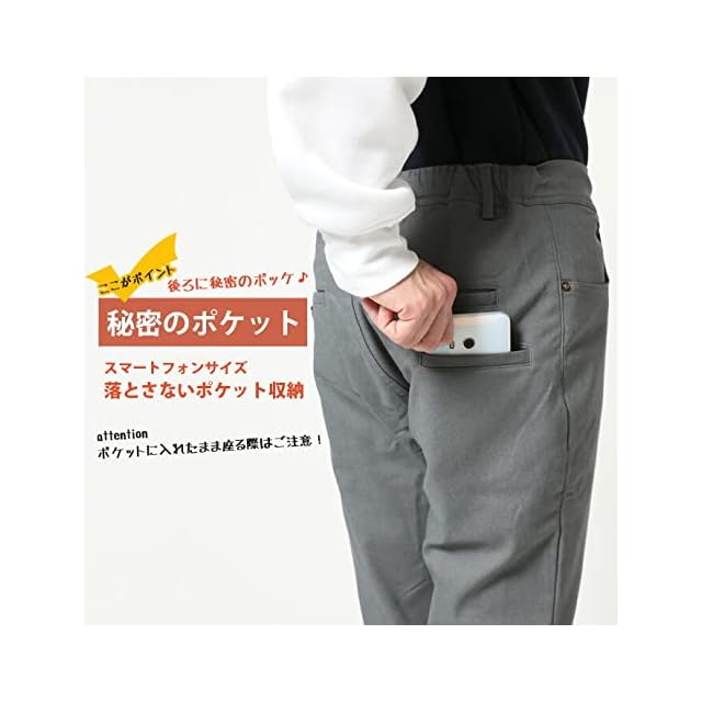 [アーケード] 暖か 裏起毛 チノパン メンズ 伸縮 感激ハイテンションストレッチ スマポケ スキニーパンツ L グレー