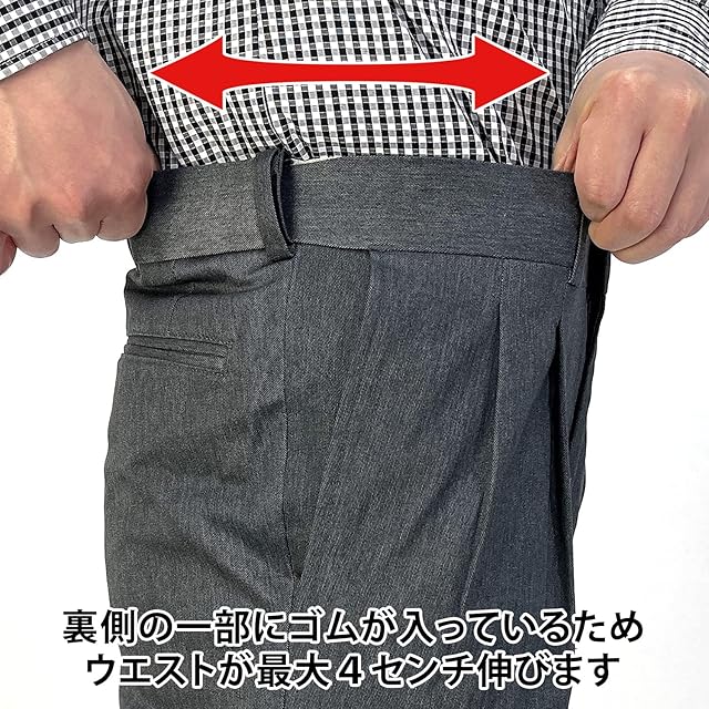 [LACONIQUE]ストレッチスラックス 裾上げ済 ツータック ウエストマジック メンズ (W79 / L65, グレー)