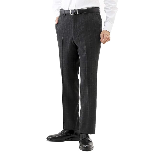 [HUNTINGTON CLUB] 日本企画 スラックス アジャスター付き メンズ 裾上げ済み ノータック ウォッシャブル (W100 / L67, チャコール)