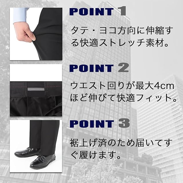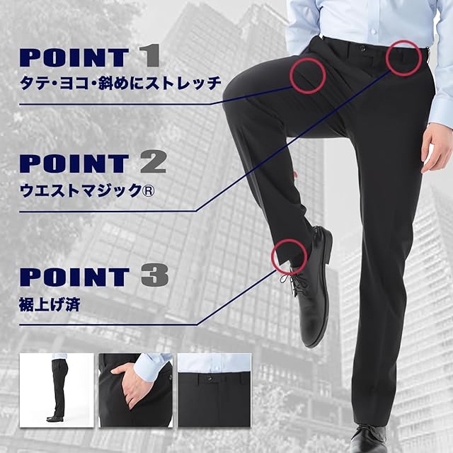 【裾上げ済みですぐに使える】オフィス・飲食店等のユニフォームとして、また急な冠婚葬祭用としても着用いただけます。 【サイズ】 選べる股下70/73/76cm。メーカーやブランドによりウエストサイズが表記より実寸が大きい場合があります。弊社は表記サイズで生産です。ご購入の際にはご確認下さい。
