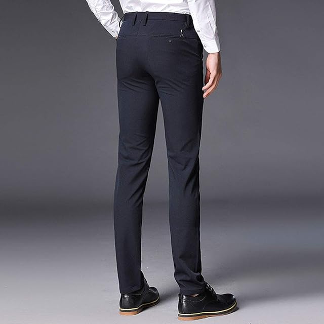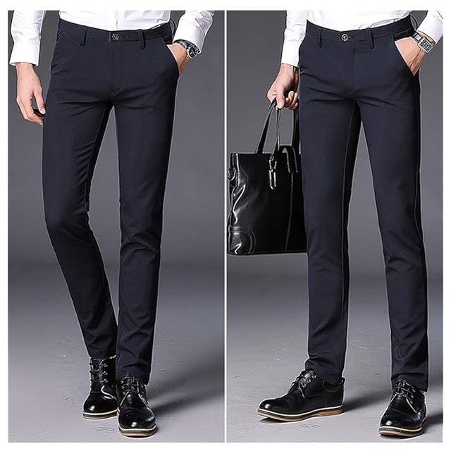 [チーアン Tiann] ロングパンツ メンズ スラックス チノパン ビジネスパンツ スーツパンツスリム ストレッチ スリムパンツ ストレート ウォッシャブル ビジネス シンプル カジュアル ノータック スリムストレート ネイビー 28