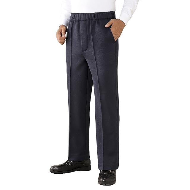 [リトルアイランド] 裏起毛パンツ ズボン 股下64cm 3L ネイビー メンズ ファスナー 総ゴム ニット 日本製 国産 蓄熱保温トレヒート 3L 紺 64