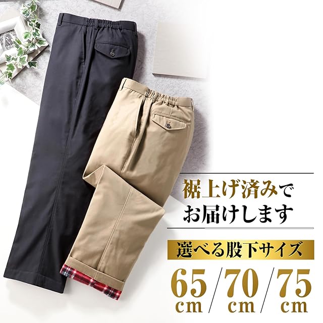 ネイビーとベージュの2色組、すそ上げ済みで選べる股下(65cm、70cm、75cm)