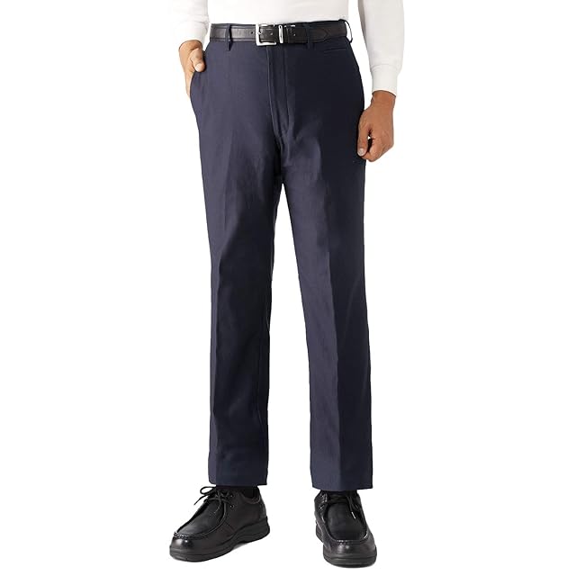 [ハンティントンクラブ] スラックス 裏起毛 裾上げ済み メンズ チノ ノータック ウォッシャブル 防寒 W108 / L70 3L ネイビー