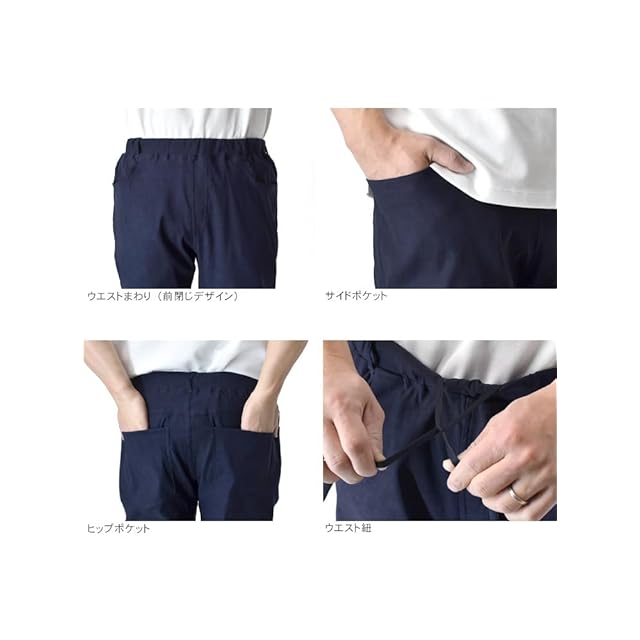 [アルージェ] ストレッチパンツ メンズ イージーパンツ 前閉じ ウエストゴム 伸縮 ベルトループ ゴルフパンツ / 001-A7N / 3L ネイビー