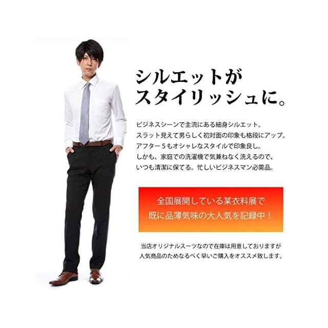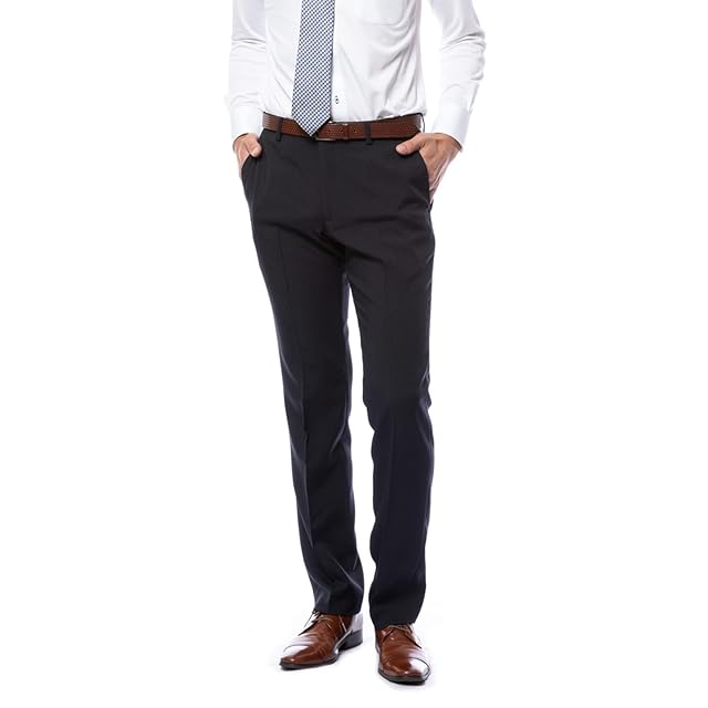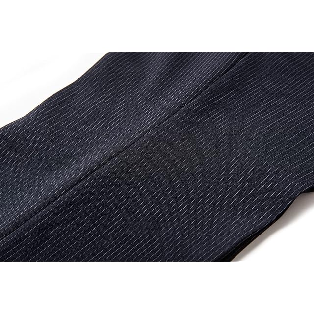 スラックス スリム メンズ ノータック 裾上げ済み ストレッチ クールビズ 春夏 夏 清涼 パンツ ストレート ビジネスパンツ スーツパンツ ウエストらくらくフック 無地 ストライプ 洗える (W79/L66, ネイビーストライプ)