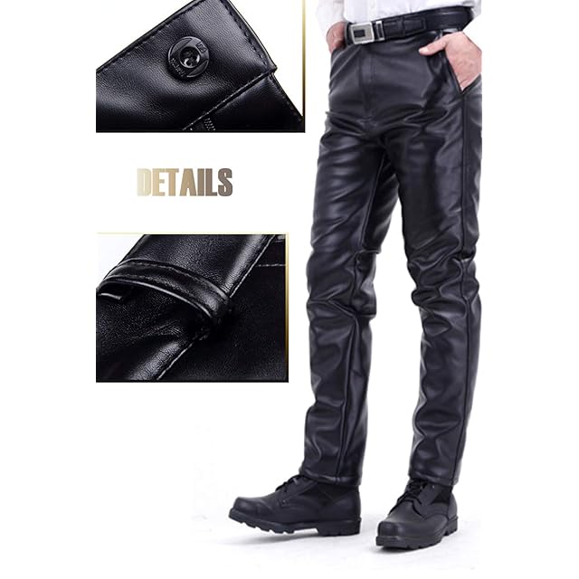 [Laquest] (ラクエスト) PUレザー ストレートパンツ 裏フリース (30 ウエスト 77cm)