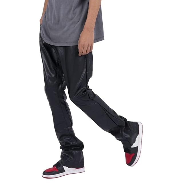 [ミニマル] フレアパンツ レザーパンツ メンズ 32inch ブラック 088