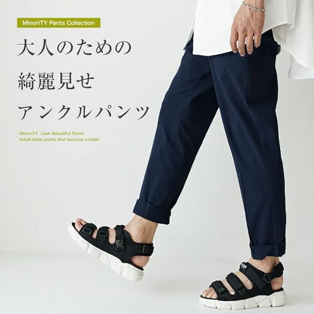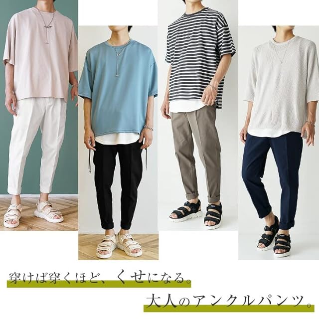 ロールアップパンツ 【清潔感◎】 チノパン メンズ アンクルパンツ テーパードパンツ シンプル コットン おしゃれ スリム トレンド 無地 (ジョーカー) L ブラック