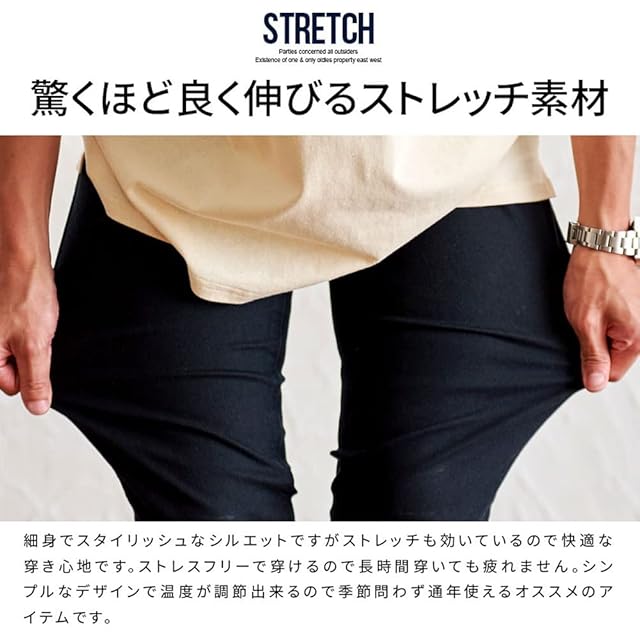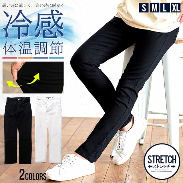 SILVER BULLET CavariA キャバリア メンズ ユニセックス 体温調節 機能素材 空調繊維 ストレッチ スキニーパンツ チノパンツ ブラックパンツ ホワイトパンツ CAK23-03 46(L) BLK(ブラック)