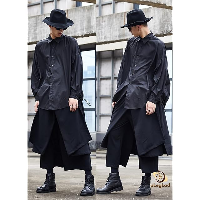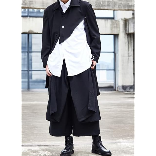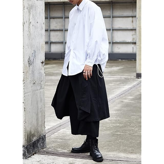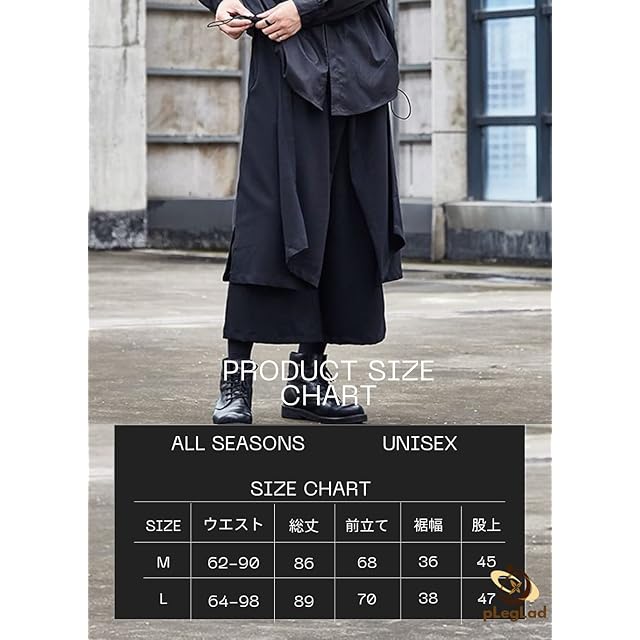 [pLegLad] サルエルパンツ メンズ ワイドパンツ 袴パンツ アラジンパンツ 大きいサイズ 巻きスカート レイヤード パンツ モード系 (Lサイズ, ブラックA)
