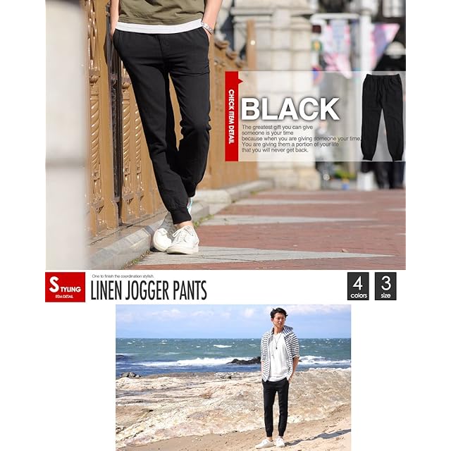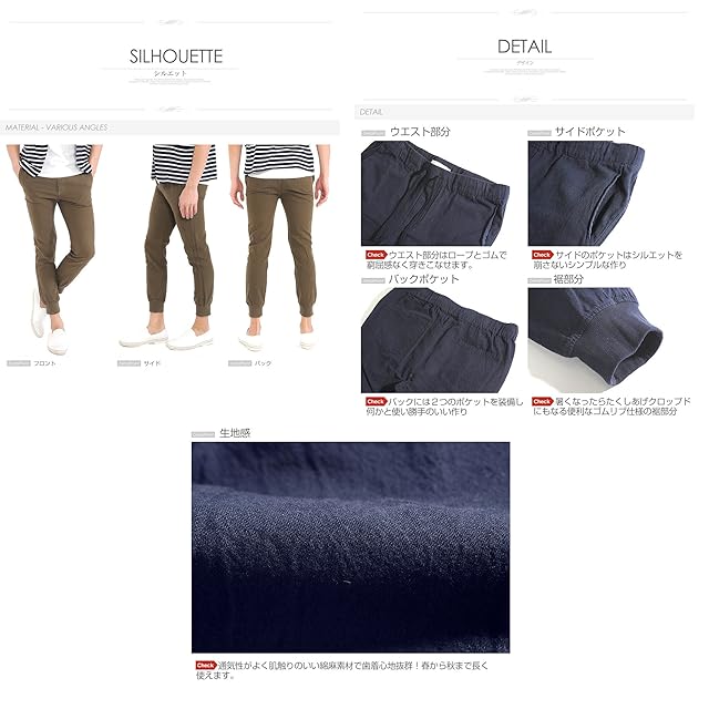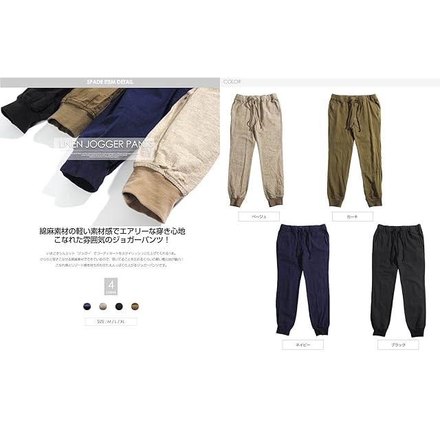 綿麻ジョガーパンツ カラーバリエーション ブラック カーキ ベージュ ネイビー