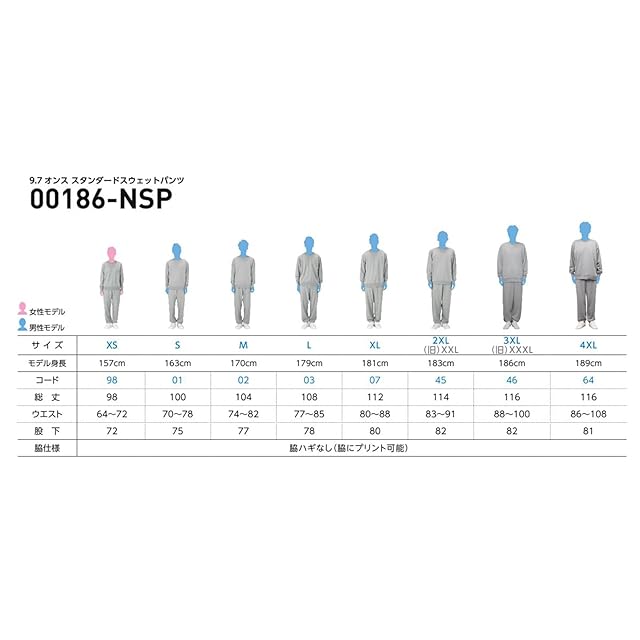 <サイズ> XS S M L XL 2XL 3XL 4XL