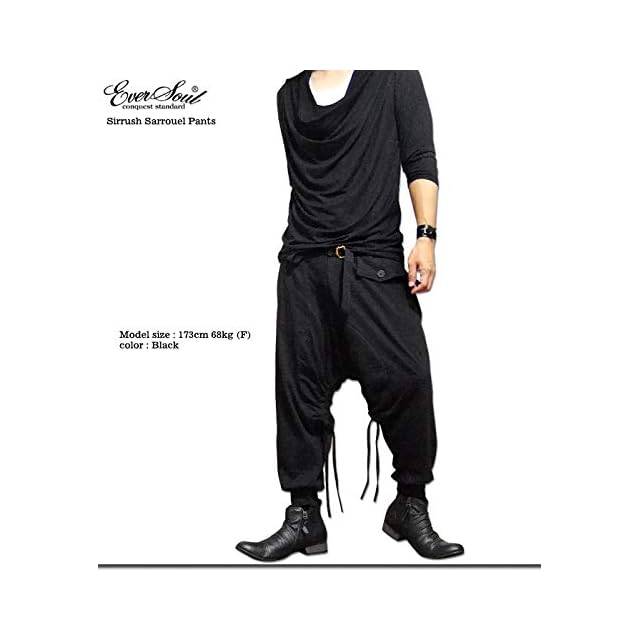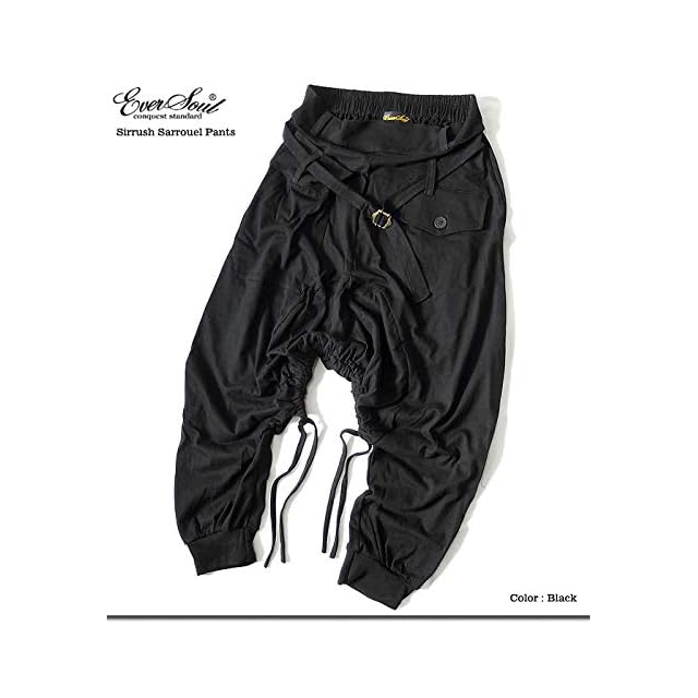 [EVERSOUL] サルエルパンツ ヨガパンツ ハーレムパンツ タイパンツ ガウチョ ベルト使い ルーズシルエット ユニセックス ブラック
