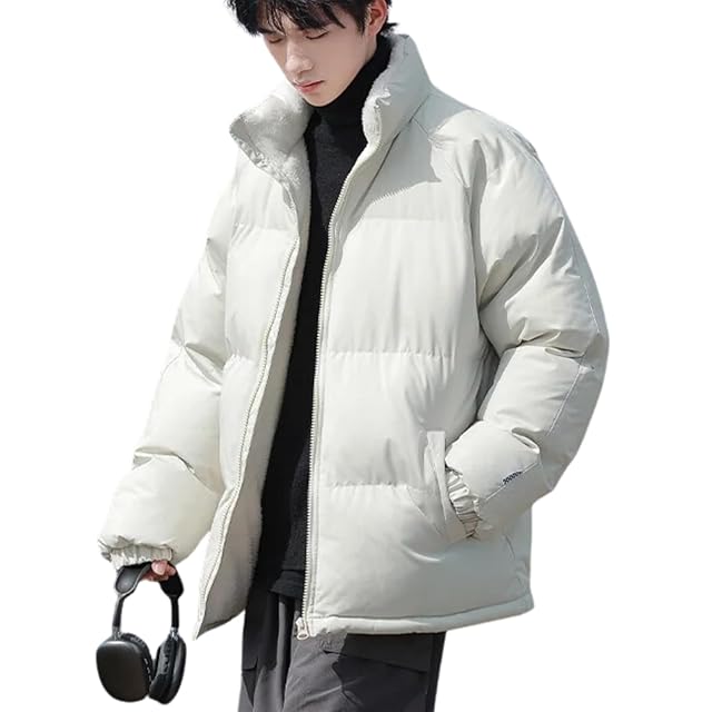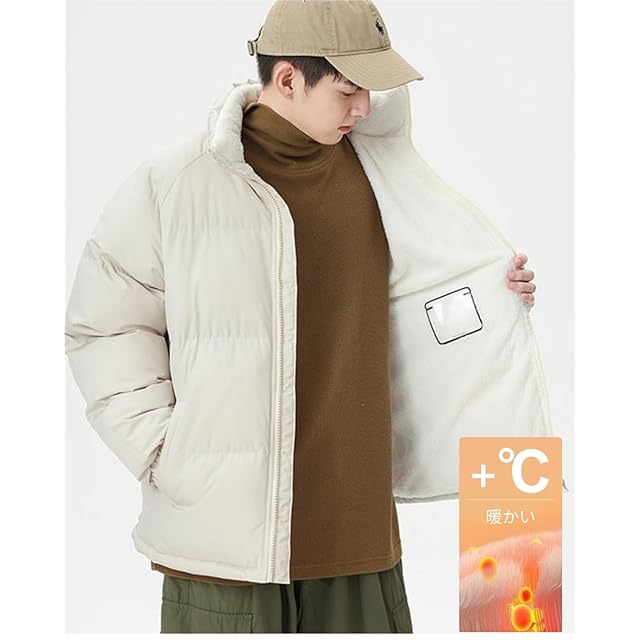 [wechose] メンズ 冬服 コート ボアジャケット 中綿 モコモコ 裏起毛 大きいサイズ ゆったり ブルゾン スタンドカラー 厚手 防風 防寒 暖かい 無地 シンプルデザイン カジュアル 男女兼用 もこもこ アウター white-2XL