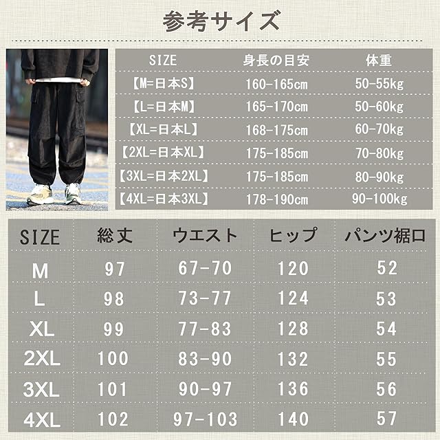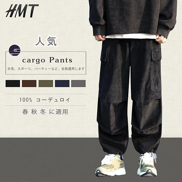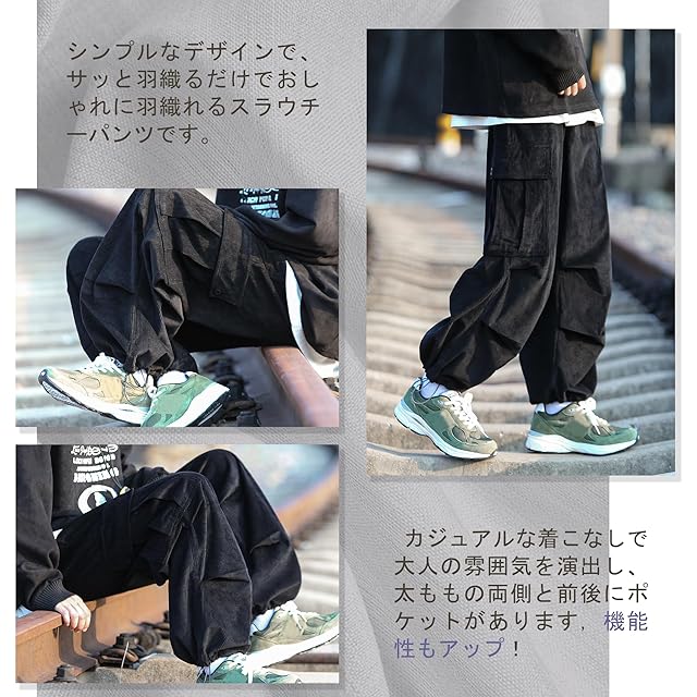 [HMT] ズボン コーデュロイパンツ カーゴパンツ ロングパンツ メンズ オーバーサイズ ワイドパンツ リラックスパンツ ガウチョパンツ スウェットパンツ スポーツパンツ アウトドア 調整紐 ウエストゴム 人気 無地 春服 秋服 冬服 (JP, アルファベット, 2XL, #302:ブラック)