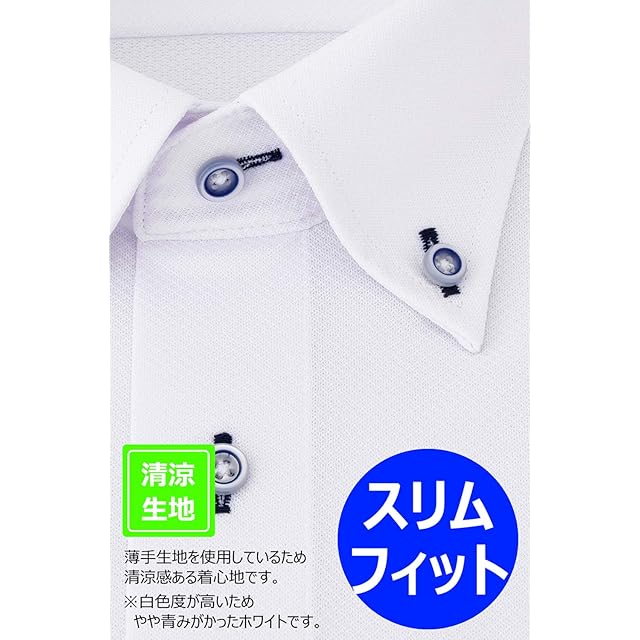 [アイシャツ] i-Shirt 完全ノーアイロン ストレッチ 超速乾 スリムフィット 長袖 アイシャツ ワイシャツ メンズ ノンアイロン 034 ホワイト ボタンダウン ミニチェック M15120000801 M82(首回り39cm×裄丈82cm)