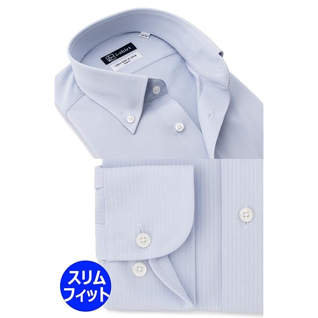 [アイシャツ] i-shirt 完全ノーアイロン ストレッチ 超速乾 スリムフィット 長袖 アイシャツ ワイシャツ メンズ ノンアイロン 087 サックス 長袖ボタンダウン ドビーストライプ M15121001081 L84(首回り41cm裄丈84cm)