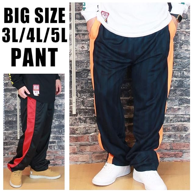 メンズ 大きいサイズ パンツ 3L 4L 5L ビックサイズ キングサイズ 部屋着 ルームウエア (1本ラインーBLACK×RED, L)