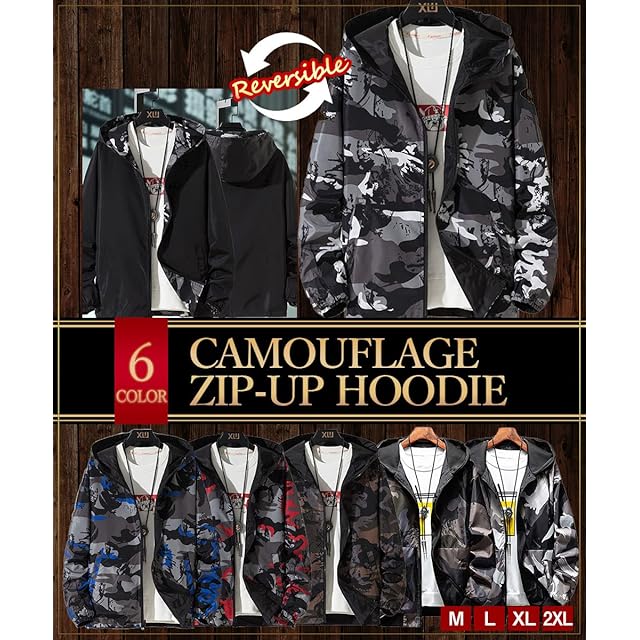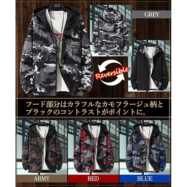 ✅【様々なスタイルに挑戦できる頼もしい1着】ミリタリー柄がかっこいいパーカーは、羽織るだけでクールな印象に。 防風、速乾、防水性もあるのでアウトドアでも活躍間違いなし. ユニセックスデザインですのでメンズ、レディース問わず着用頂けます。リバーシブル時はシンプルなブラックでフートの裏地がお洒落に魅せてくれます。