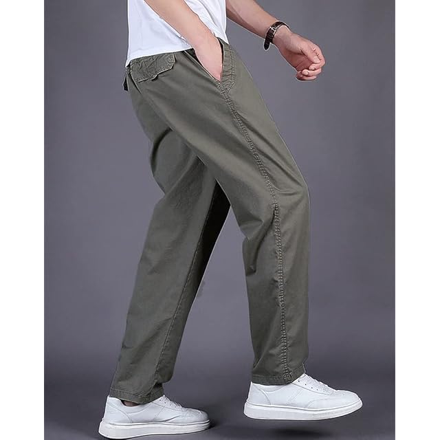 (ソインガ) Soinnga チノパン メンズ ゆったり ワークパンツ ロングパンツ ストレート ズボン ウエストゴム 無地 定番 綿 アーミーグリーン XXL