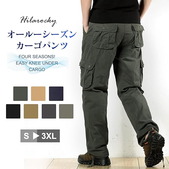 [Hilarocky] カーゴパンツ メンズ ズボン ワークパンツ ゆったり 大きいサイズ 多機能 ロングパンツ 綿 無地
