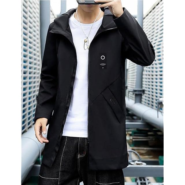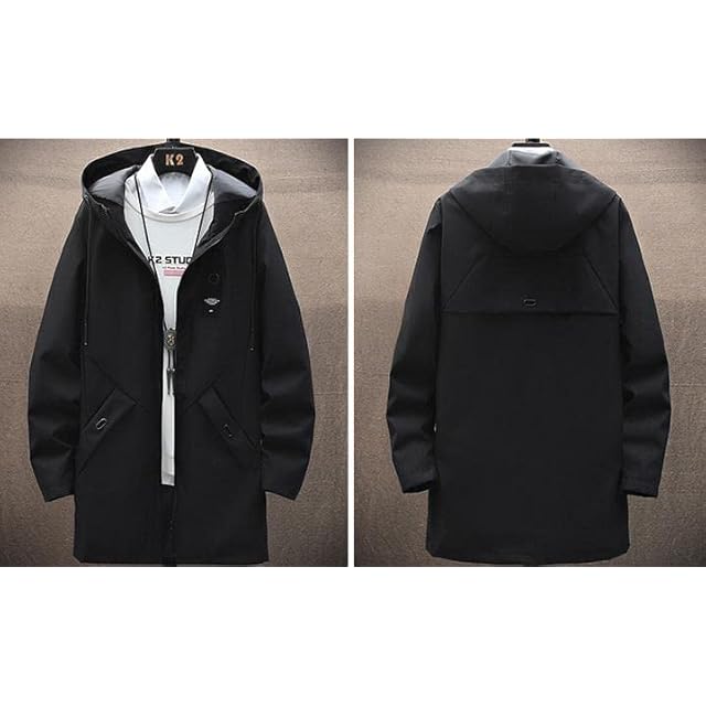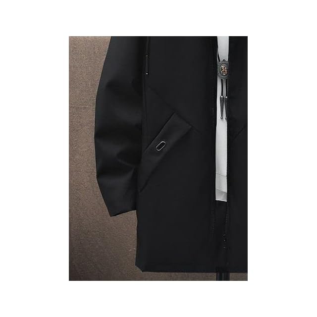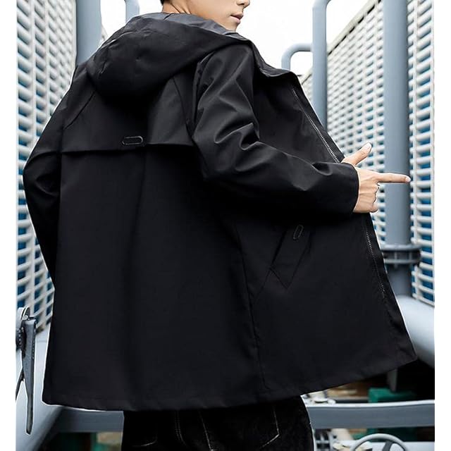 [アスペルシオ] スタイリッシュ ハーフコート フードつき ストリート系 アウター メンズ 長袖 ジップアップ ウィンドブレーカー ビター系 きれいめ ポケット デザイン モード ファッション アッタカ 御洒落 カッコイイ コート ジッパー パーカー ブルゾン ミリタリー アウトドア ジャケット キャンプ 防寒 暖かい ファスナー ジャンパー 防寒防風 上着 フィールドコート (2XL) ブラック