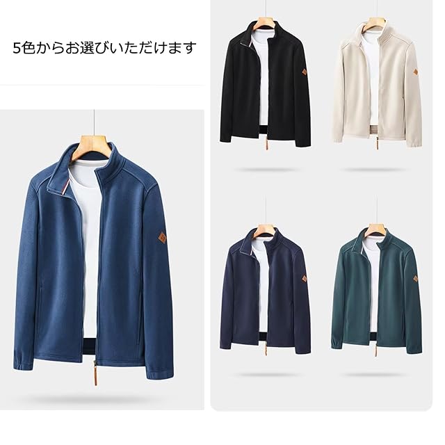 フリースジャケット メンズ:毛玉防止加工を施したリサイクル・ポリエステル100%の両面フリースジャケット。軽量保温、柔らかで着心地よい。生地は耐久性があり、ボールがつきにくい。スタンド襟となっており、首元からの風の侵入も防ぎます。