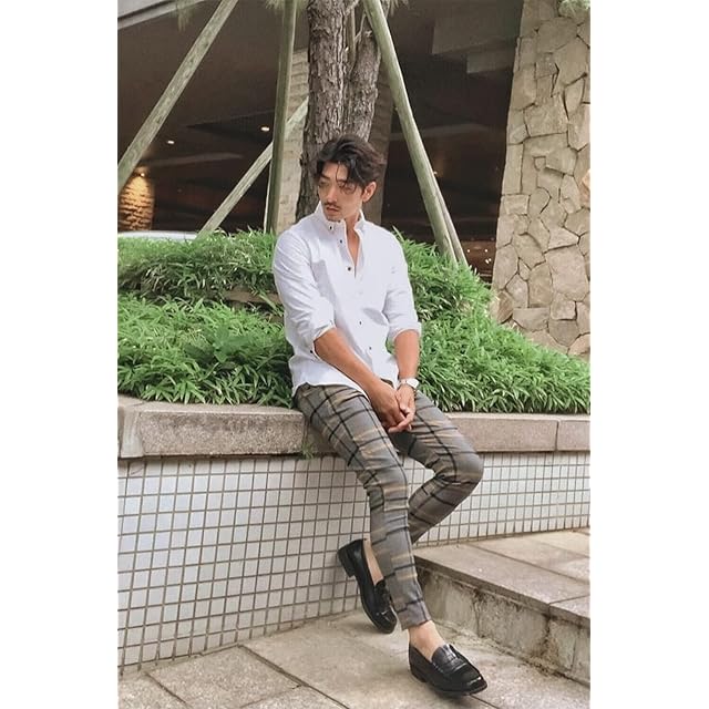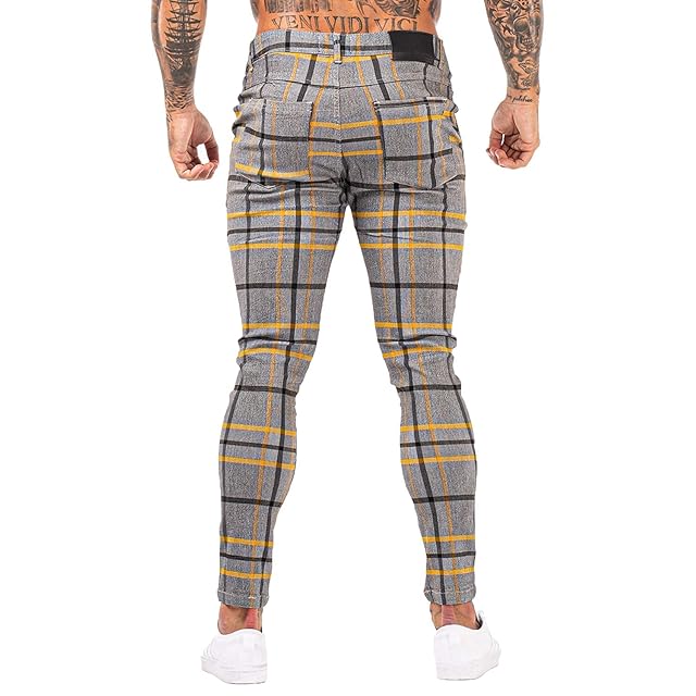 [GINGTTO] (ジンット チノパン メンズ ストレッチ スキニーパンツ チェックパンツ スリム (28, イェローライン)