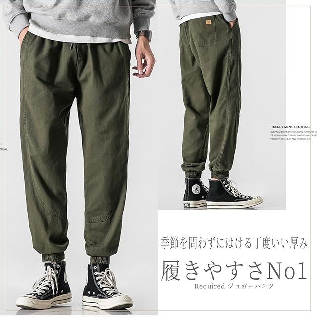 Required ジョガーパンツ メンズ ゆったり サルエルパンツ メンズ ズボン 9分丈 ワイドパンツ メンズ オリーブ L