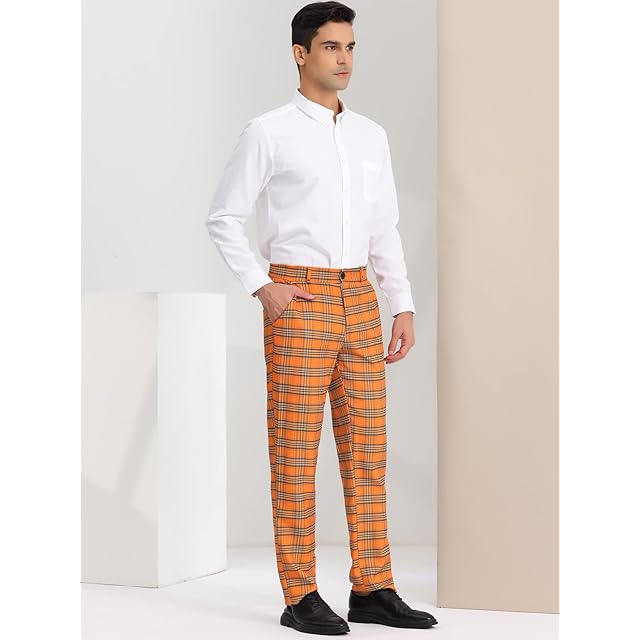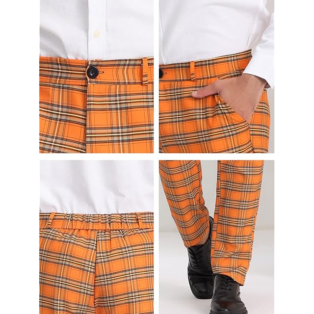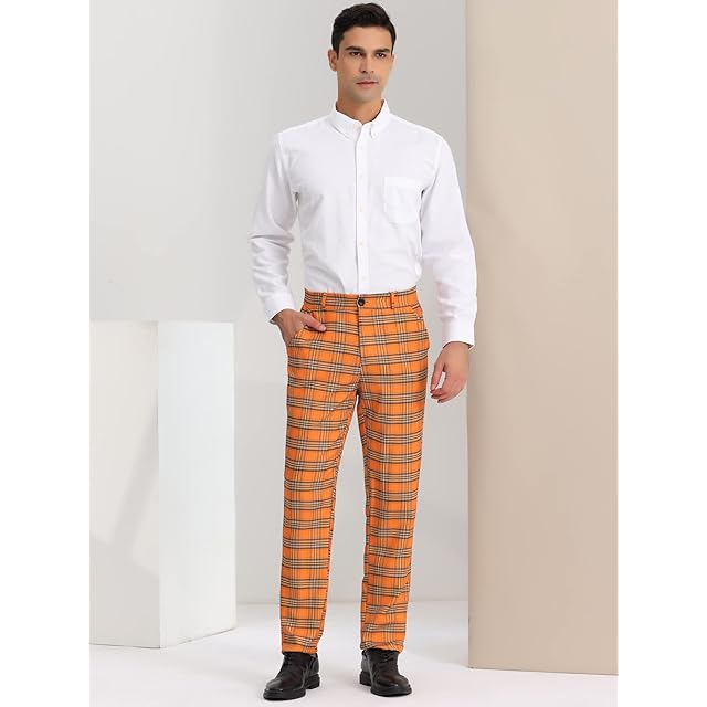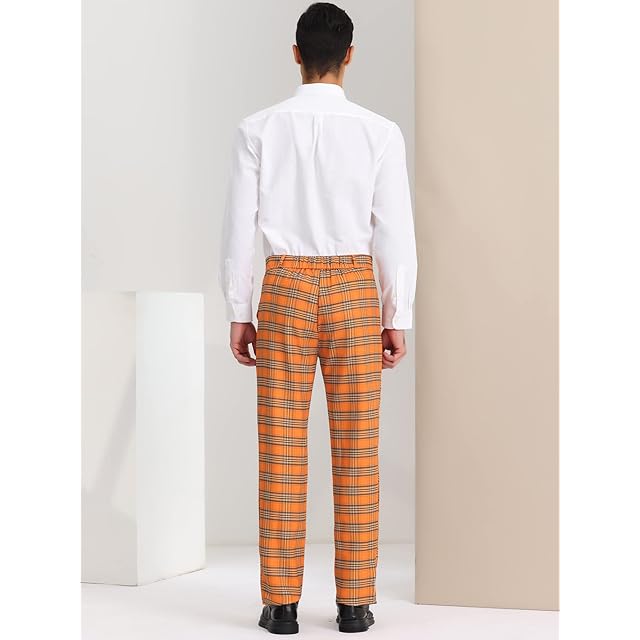 [Lars Amadeus] ロングパンツ カジュアルズボン レギュラーフィット チェック柄 フォーマル ビジネス メンズ オレンジホワイト 28