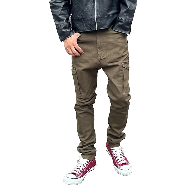 [BEATJIVE] 9213-0006B-2-KHAKI カーゴパンツ メンズ サルエルパンツ ロングパンツ テーパードパンツ ミリタリー ストレッチ