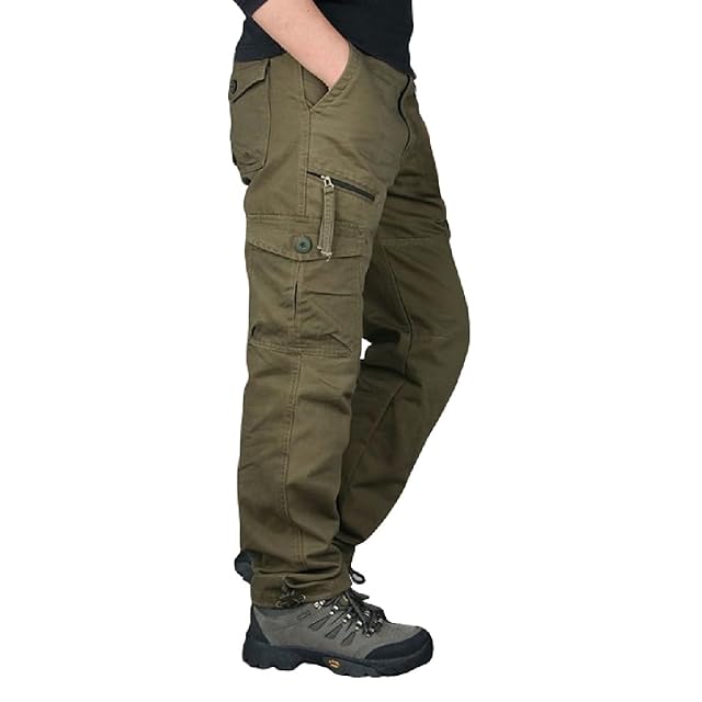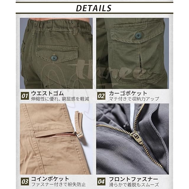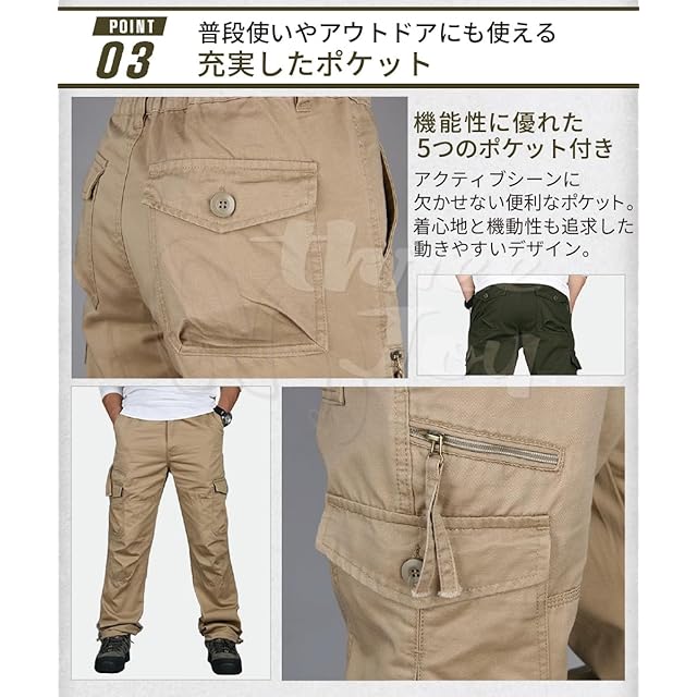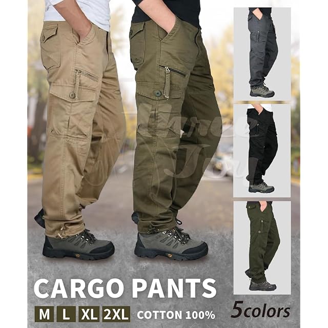 [three Joy] アウトドア メンズ ズボン ワイドパンツ パンツ 大きめ ミリタリーパンツ ロングパンツ ポケット 登山 カーキ 2XL