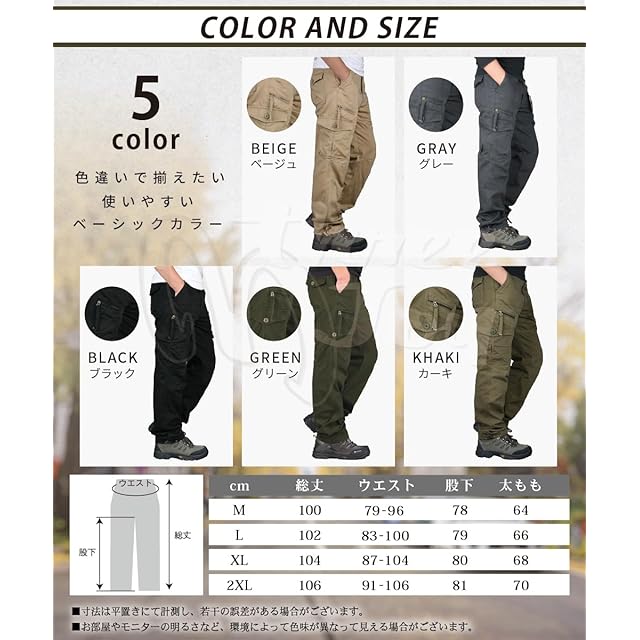 【サイズ】総丈/ウエスト/股下/太もも(㎝)【M】100/79/96/78/64【L】102/83/100/79/66【XL】104/87/104/80/68 【2XL】106/91/106/81/70※サイズに若干の誤差が生じる場合がございますのでご了承ください。商品画像と実際の色は、撮影の状況・モニターの表示等により若干異なる場合がございます。