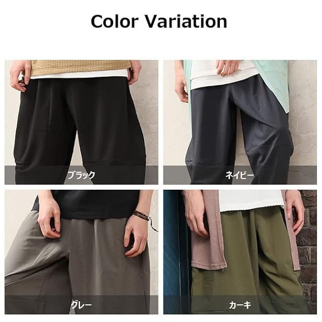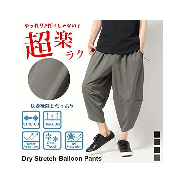 [アーケード] 快適パンツ メンズ 高機能 アラジンパンツ ゆったり サルエルパンツ イージーケア 撥水 速乾 接触冷感 伸縮ストレッチ UVケア L カーキ