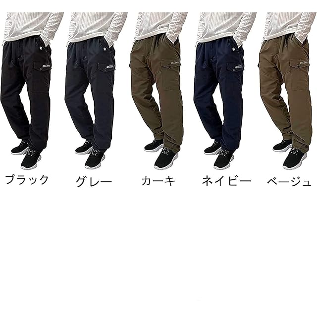 ウエスト総ゴム、裏地は総フリースのカーゴパンツ