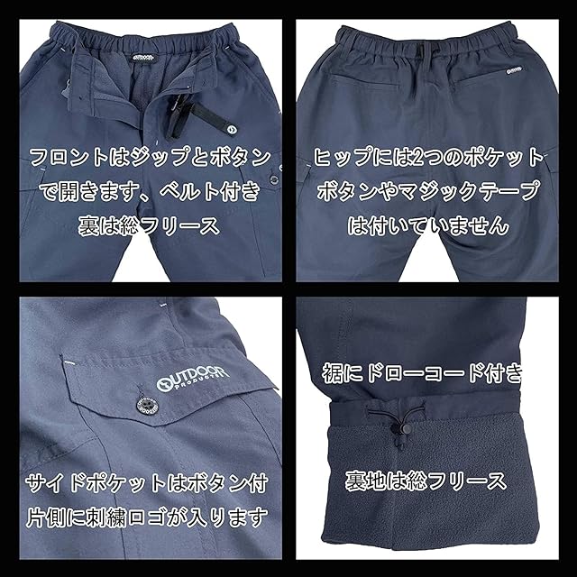 [OUTDOOR PRODUCTS] ポリツイルピーチ 裏フリース クライミング カーゴパンツ M,L,LL (L, カーキ) 8641