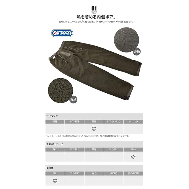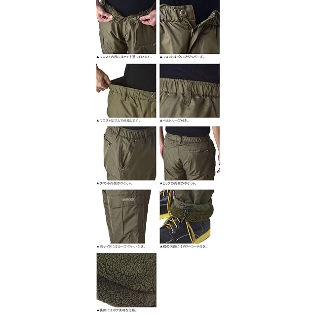 [アウトドアプロダクツ] 厚い裏ボア カーゴパンツ メンズ 暖かいパンツ 防寒 冬用 正規品 / A2R / LL カーキ・KHAKI